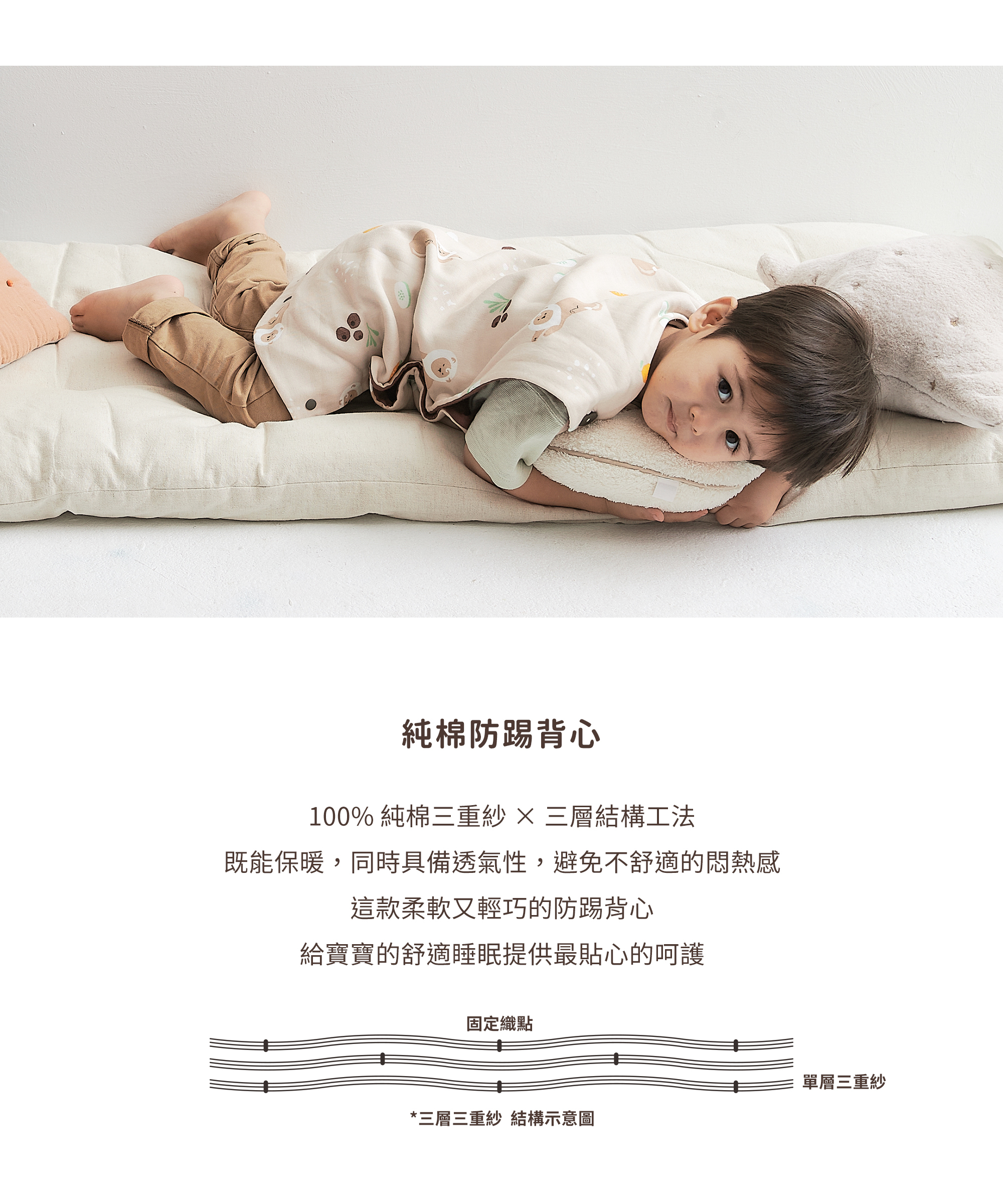 • 100% 純棉三重紗,蓬鬆柔軟,舒適親膚