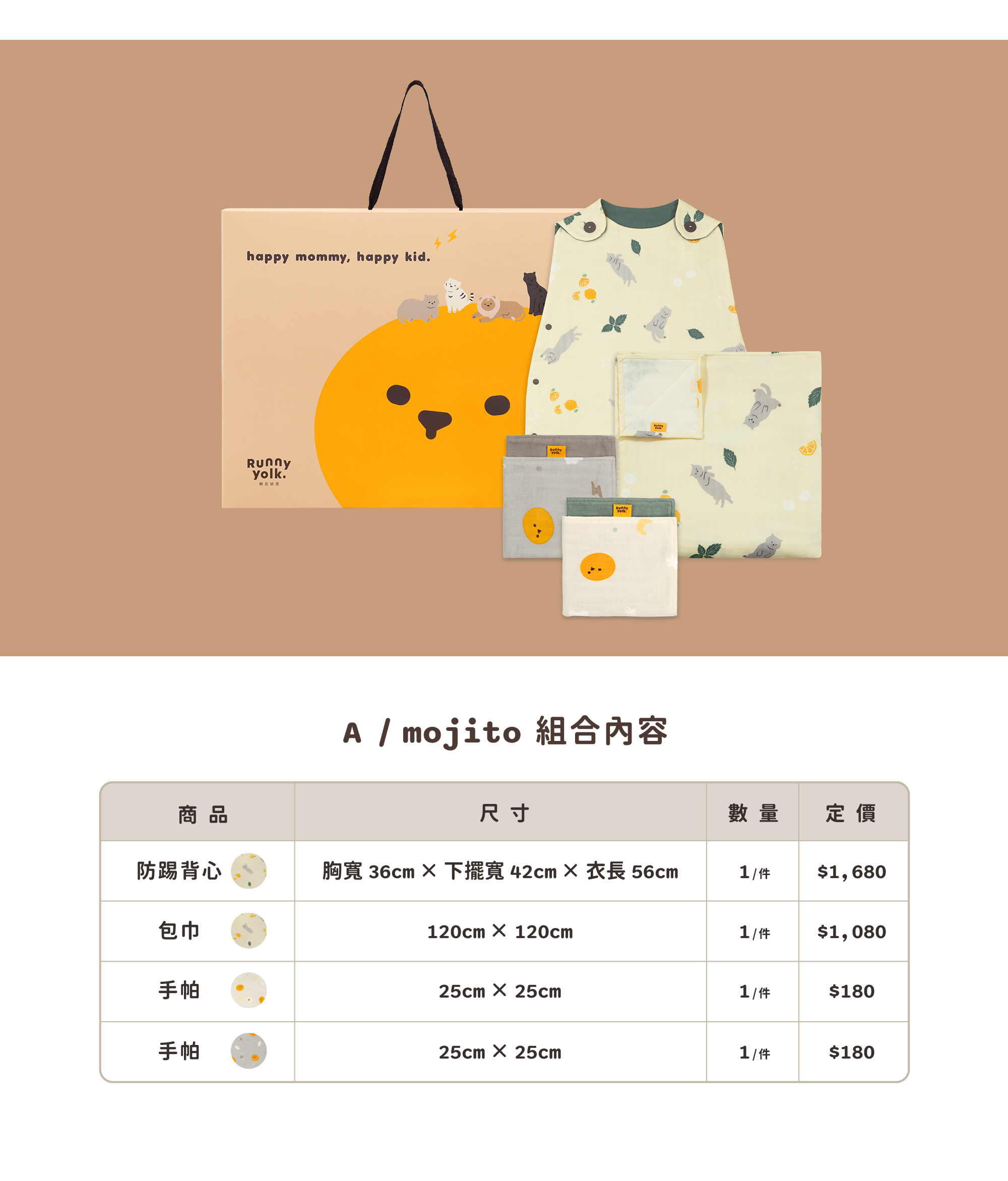 • 防踢背心X1/包巾X1/小方巾X2,含禮盒包裝