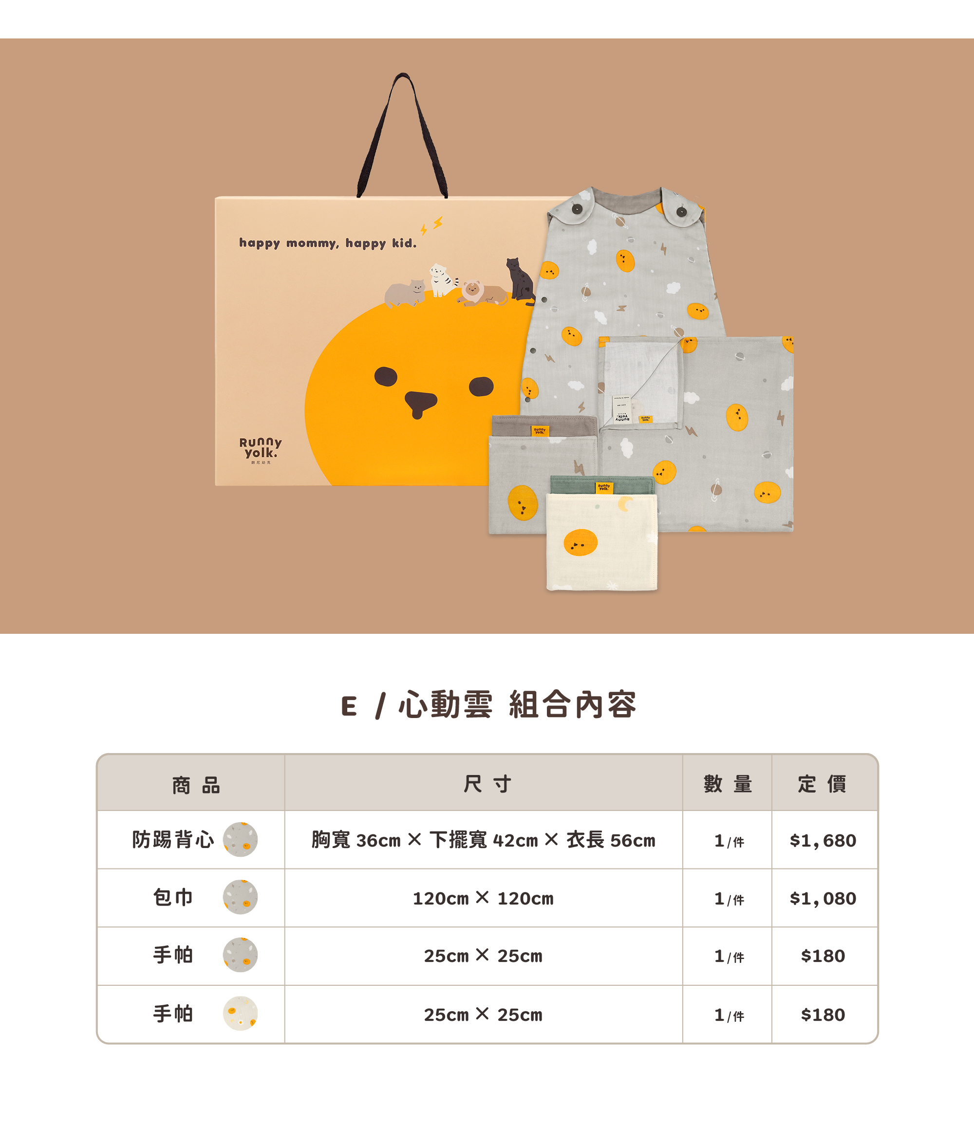 • 防踢背心X1/包巾X1/小方巾X2,含禮盒包裝
