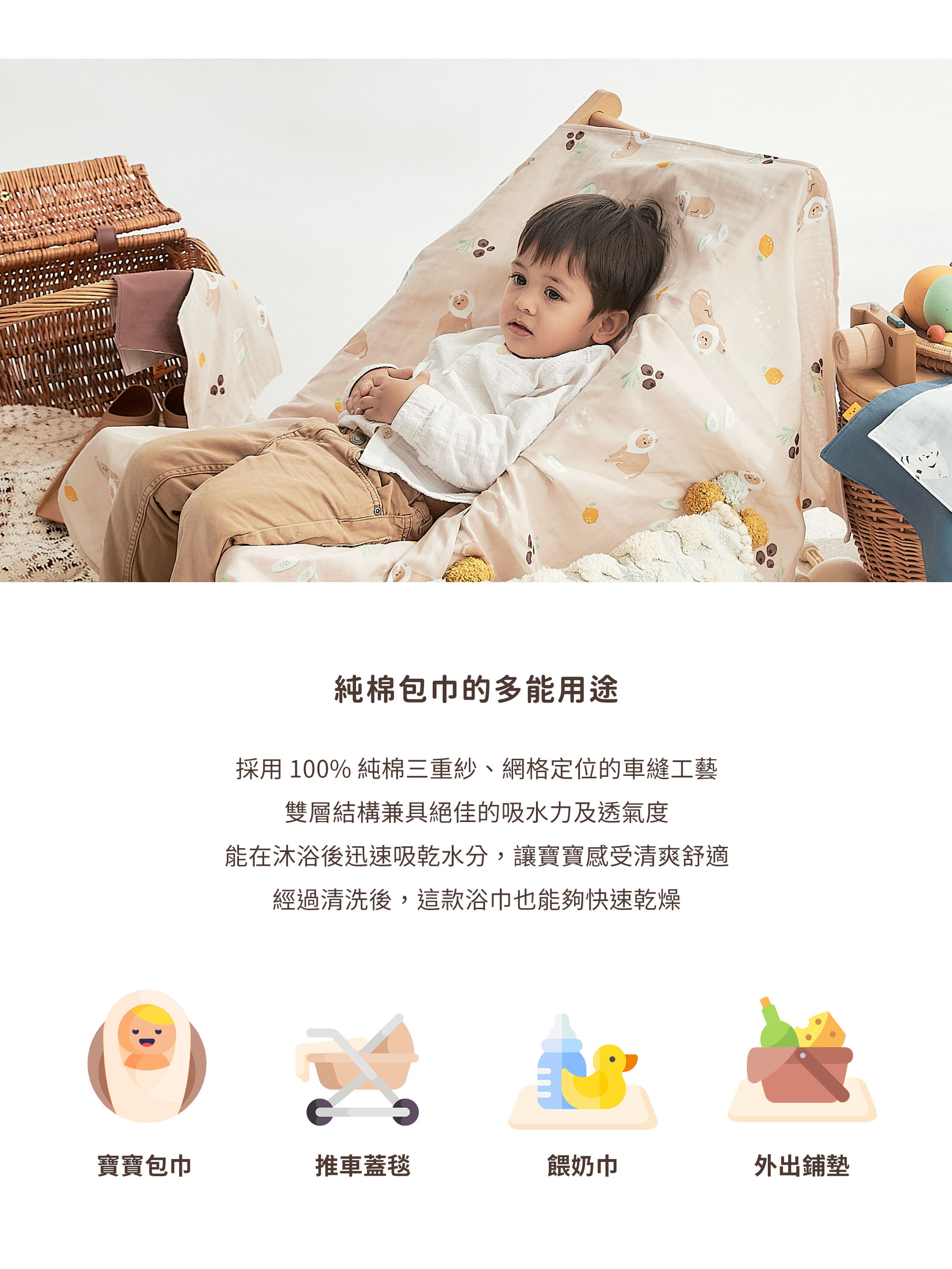 • 多用途:可當推車蓋毯、餵奶巾、外出鋪墊等等