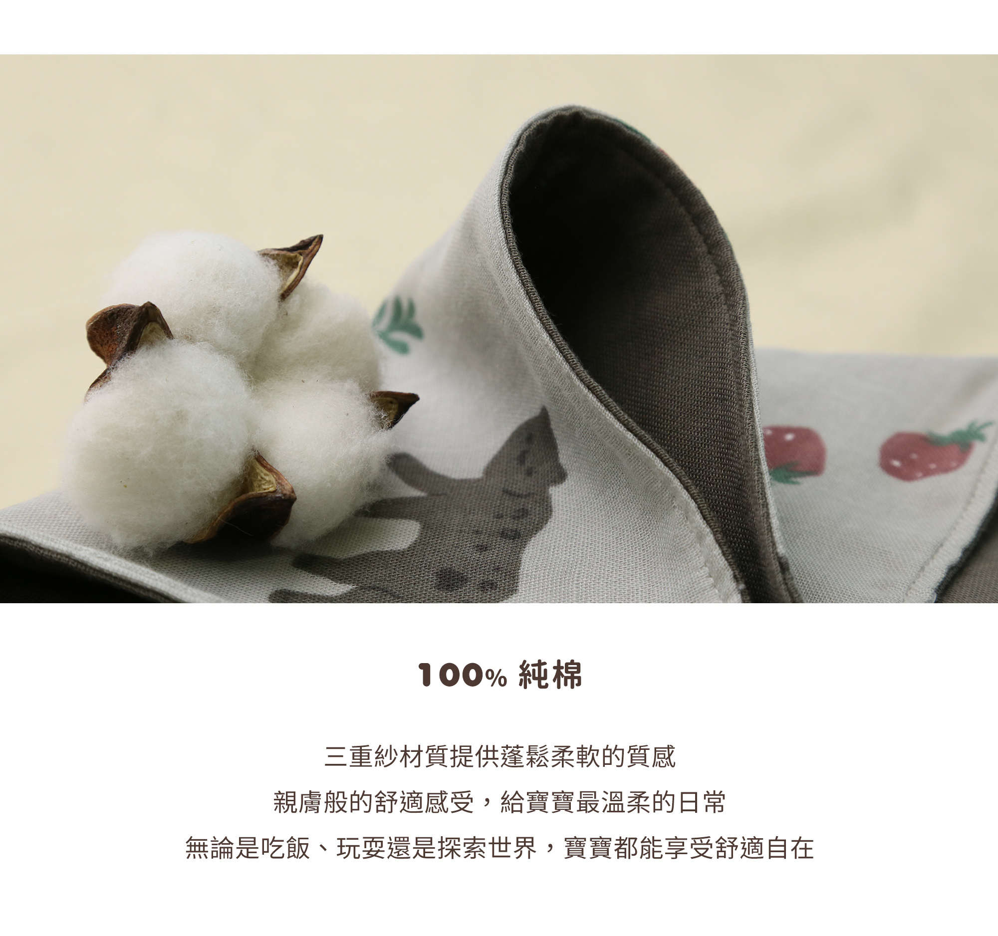 • 100% 純棉三重紗X單層輕薄設計
