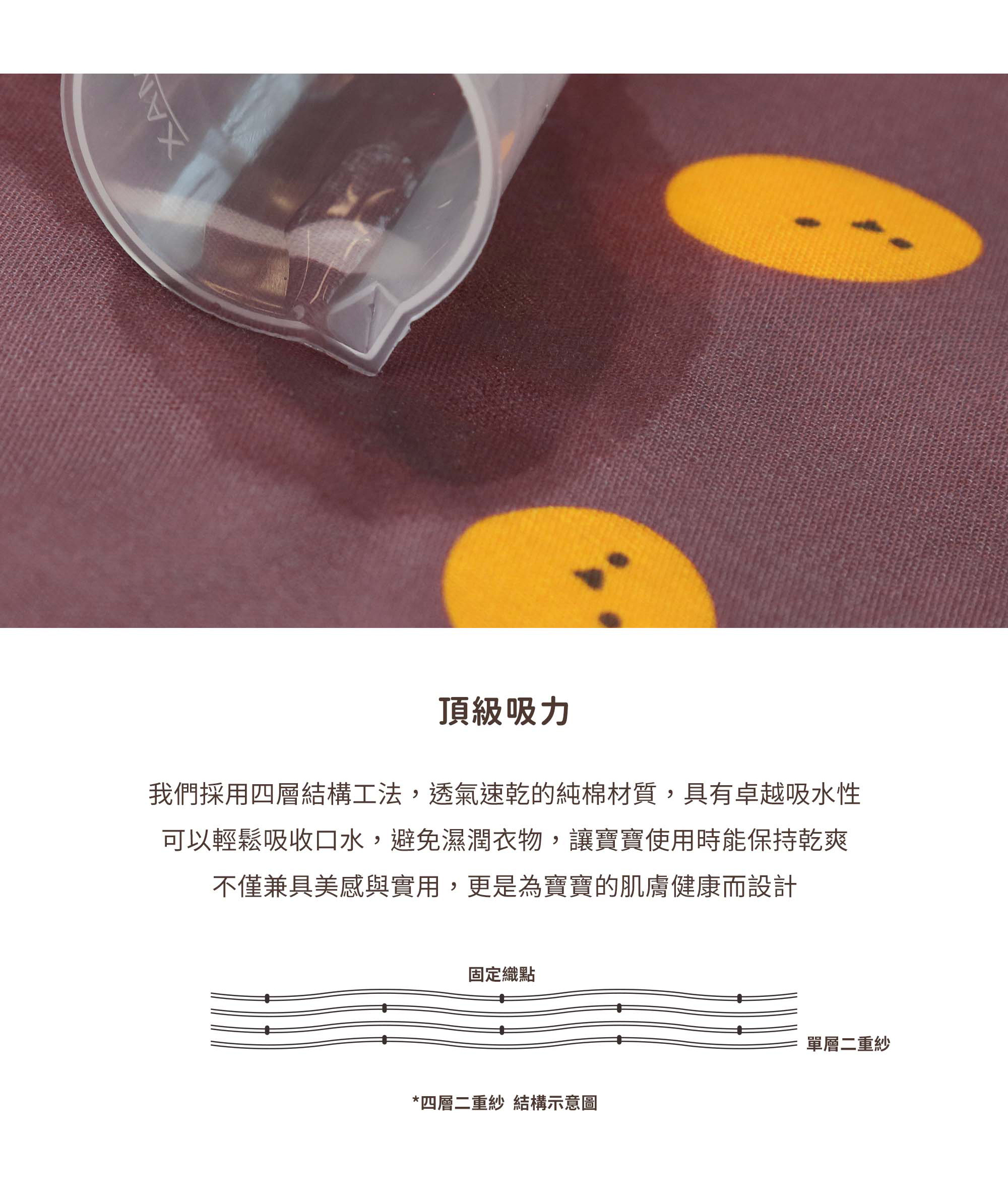 • 100% 純棉二重紗X四層結構工法