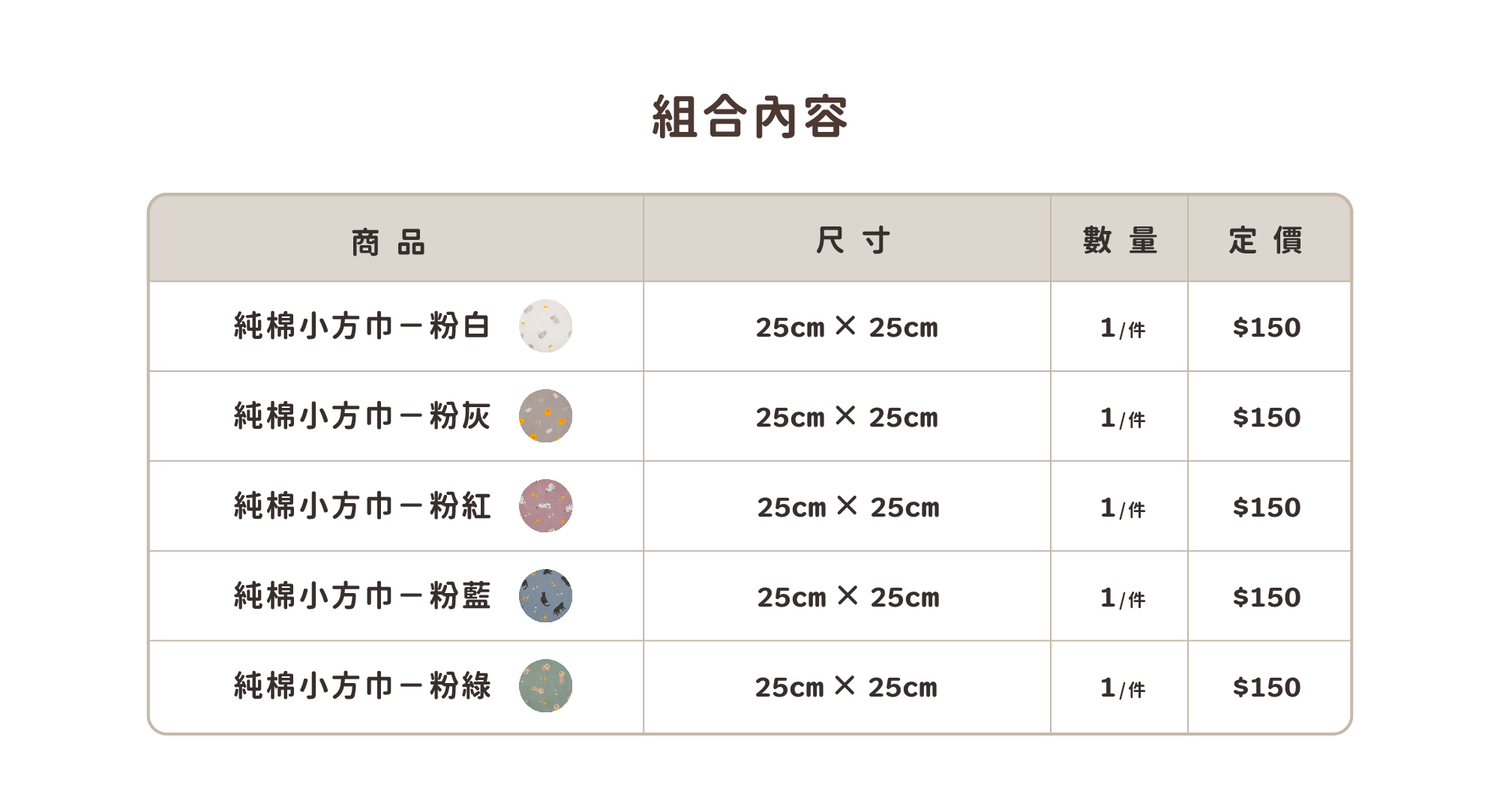 • 粉白/粉灰/粉紅/粉藍/粉綠 小方巾,五款各一
